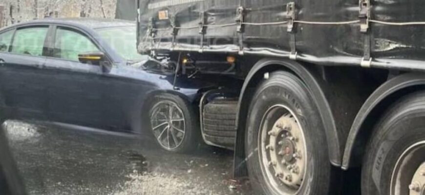 Об автоаварии рассказали в соцсетях очевидцы её последствий, опубликовав фото с места дорожного происшествия. Оно произошло рядом с остановкой общественного транспорта «Улица Менжинского». Легковой дорогой седан марки BMW влетел сзади под кузов полуприцепа фуры.