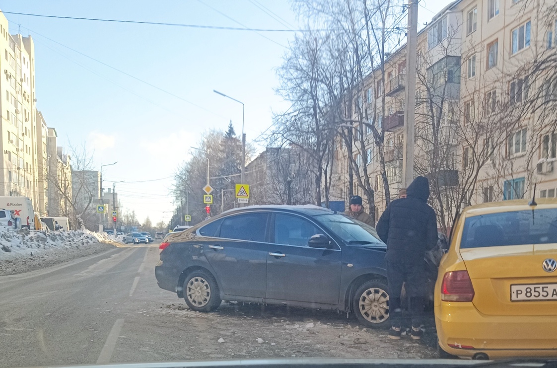 Есть ощущение что «Ниссан» мог уходить от столкновения. На этом отрезке дороги по улице Костычева любят перебегать дорогу некоторые самонадеянные граждане — всего лишь в 25 метрах от светофора. Скача, подобно сайгакам, через сугробы на обочинах. Вероятно, водитель чёрной иномарки пытался избежать страшного. Но пострадал сам в итоге… Либо его банально занесло на скользкой дороге, когда он выезжал с неглавной дороги на главную.