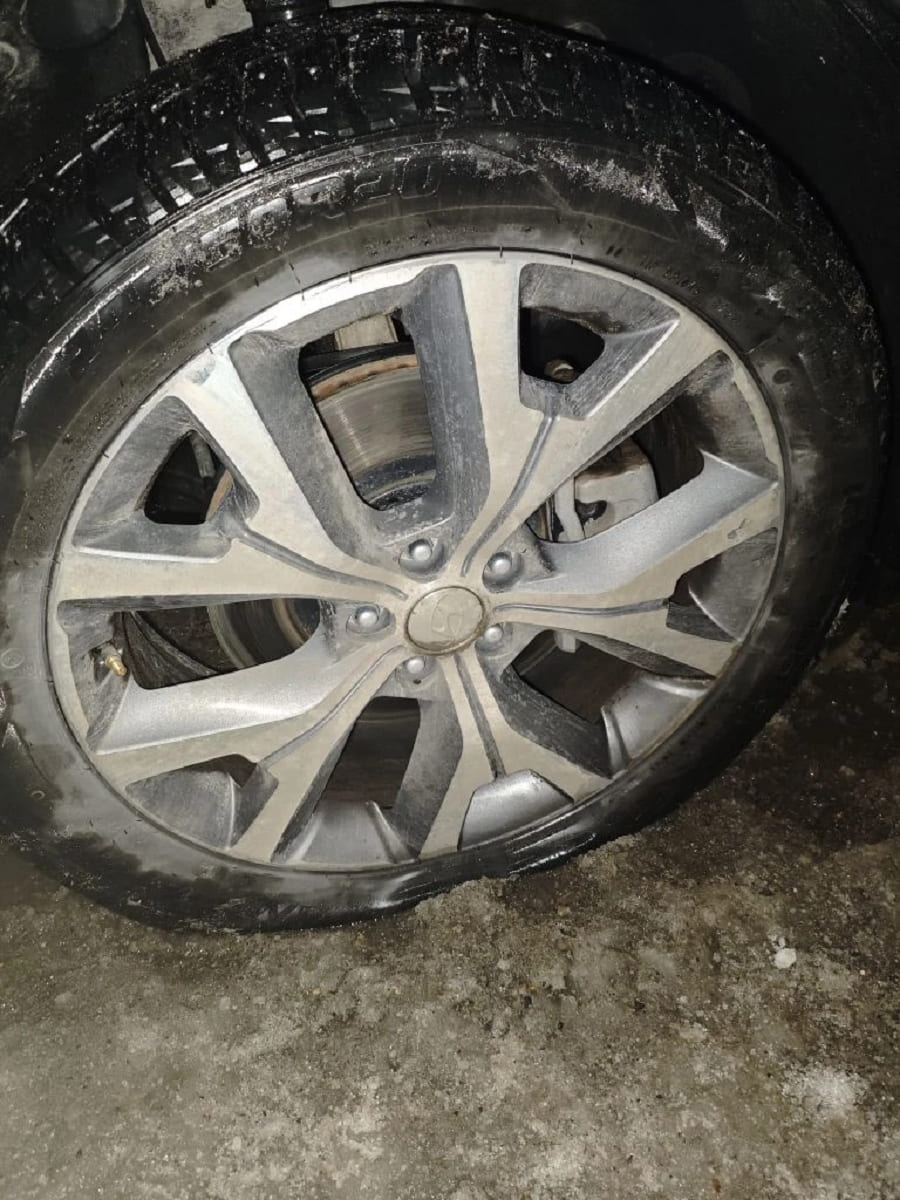 — Прибыли они буквально через пару минут. Видимо, кто-то их уже до меня вызвал, — пояснил читатель, приславший в редакцию фотографии с места происшествия и видеозапись со своего авторегистратора. — Ущерб вышел большой: один диск на мой внедорожник стоит около 120 тысяч рублей, а их два сильно повреждены. Резина стоит ещё 20 тысяч…