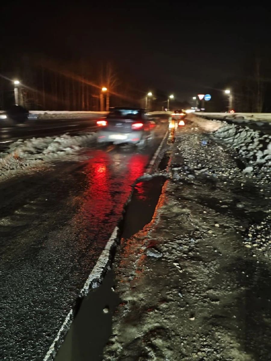 — Накануне вечером, 28 февраля, в 20.30 при съезде с трассы М-3 «Украина» на Орловскую трассу, как двигаться в сторону Брянска, моя и многие другие машины попали в большущую яму, — рассказал сегодня, 1 марта, «Брянскому ворчуну» постоянный читатель Станислав. — После этого многие водители пробили колеса. А немало кто, как и я, сразу по два правых колеса пробили. Плюс погнуты и разбиты литые диски.