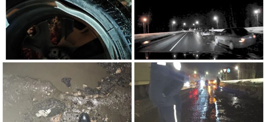 — Накануне вечером, 28 февраля, в 20.30 при съезде с трассы М-3 «Украина» на Орловскую трассу, как двигаться в сторону Брянска, моя и многие другие машины попали в большущую яму, — рассказал сегодня, 1 марта, «Брянскому ворчуну» постоянный читатель Станислав. — После этого многие водители пробили колеса. А немало кто, как и я, сразу по два правых колеса пробили. Плюс погнуты и разбиты литые диски.