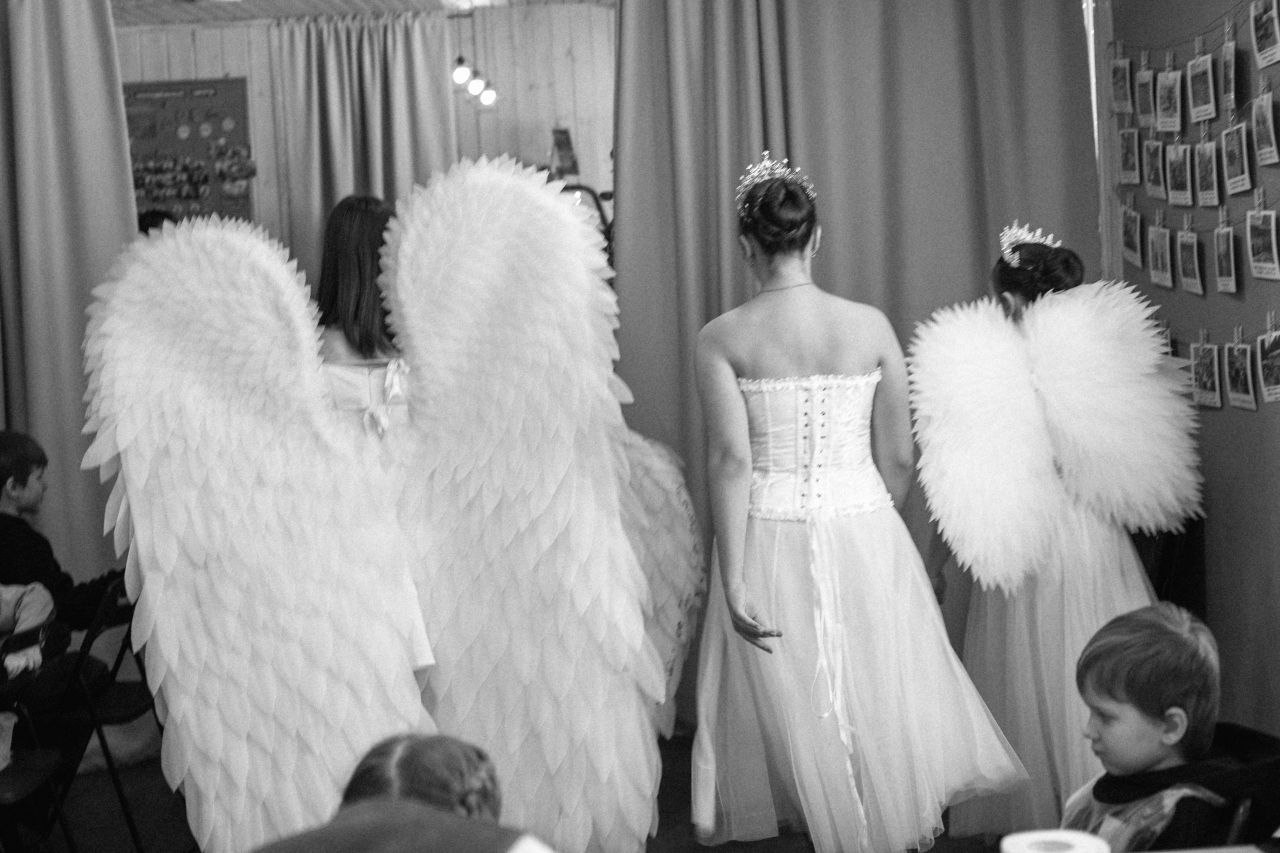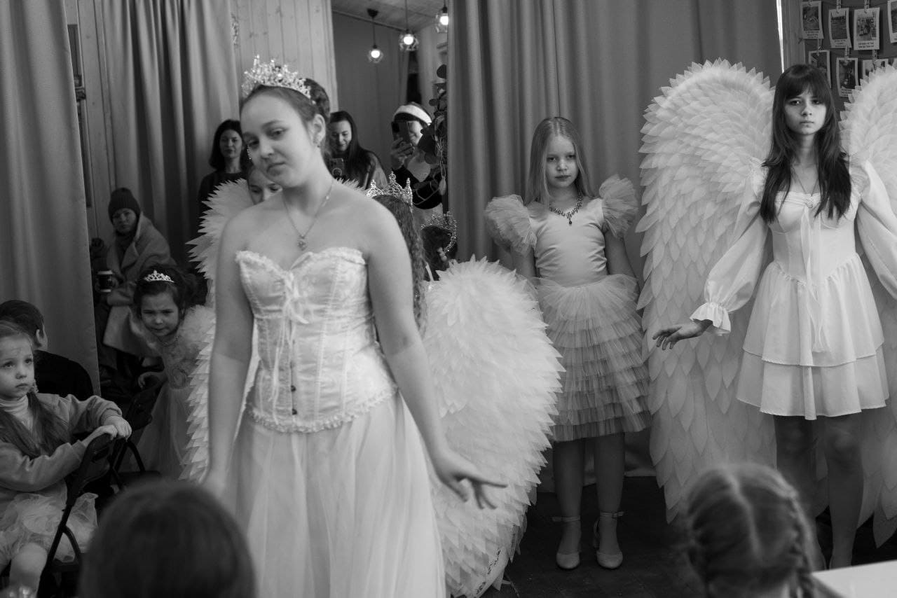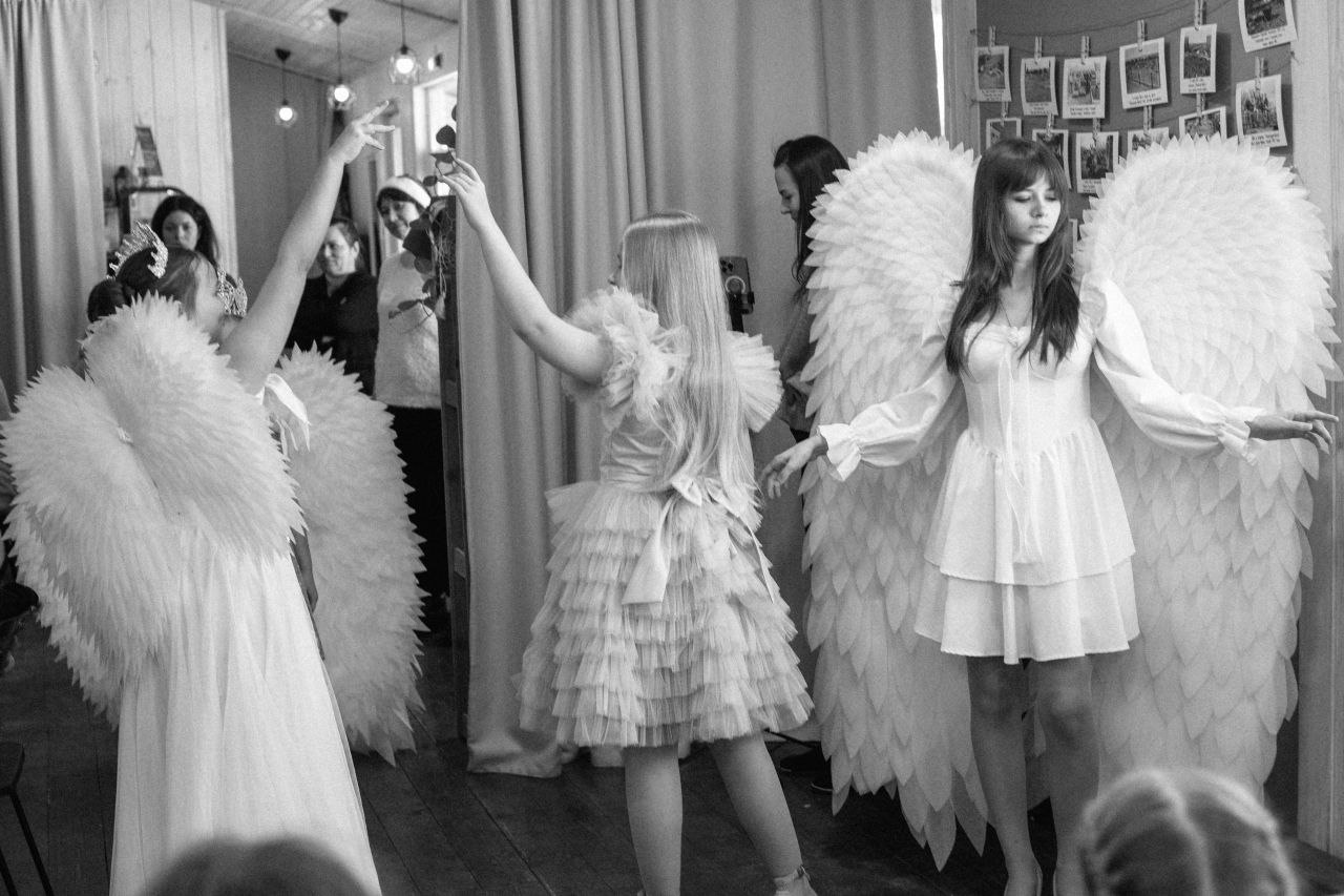 Семейный фестиваль открывали маленькие и юные модели из Образцового театра моды «Мода как искусство» (худрук Элина Суржик), которые показали авторскую коллекцию и замечательное представление “Зимние ангелы”.