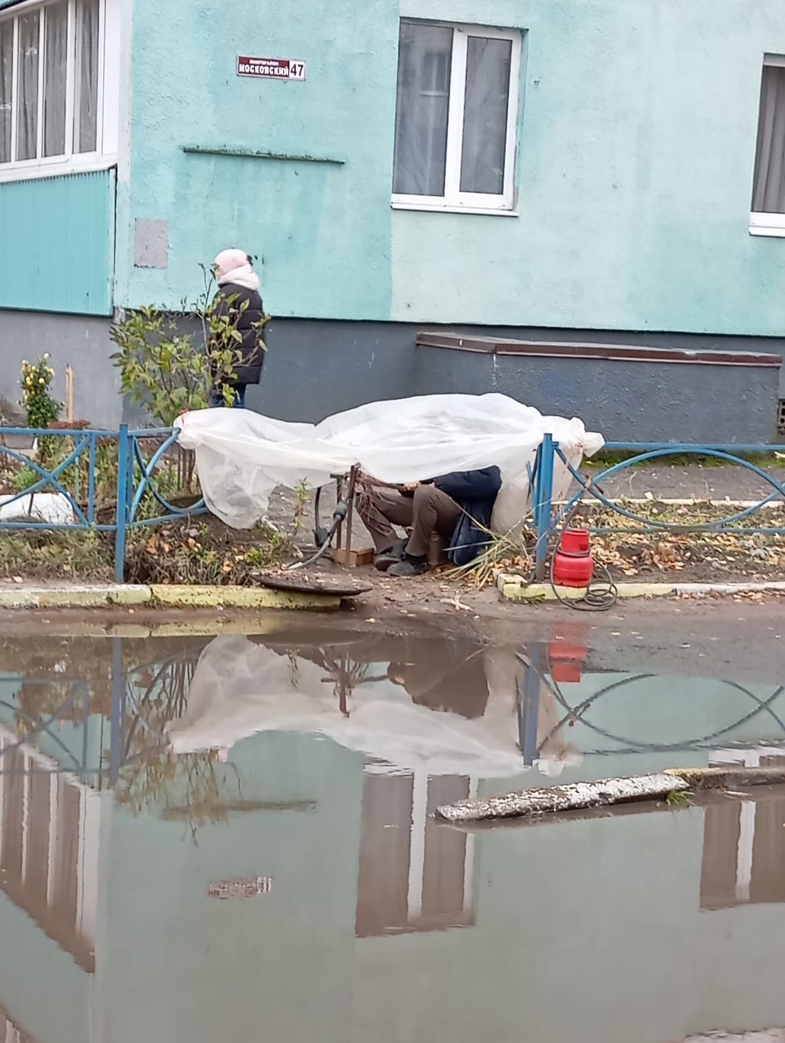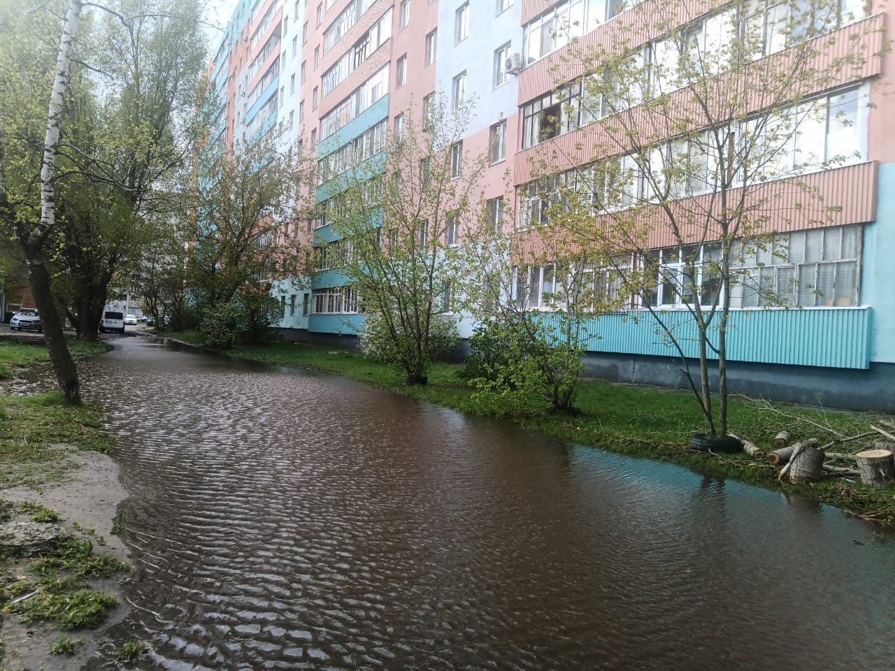 Одни неприятности от этих дождей. А все почему? Ливневок, или ливневой канализации в столице региона почти нет. Отсюда и возникающие там и сям нерукотворные лужи-моря. Одно из них разливается то и дело у дома №47 в Московском микрорайоне (улиц там как таковых нет).