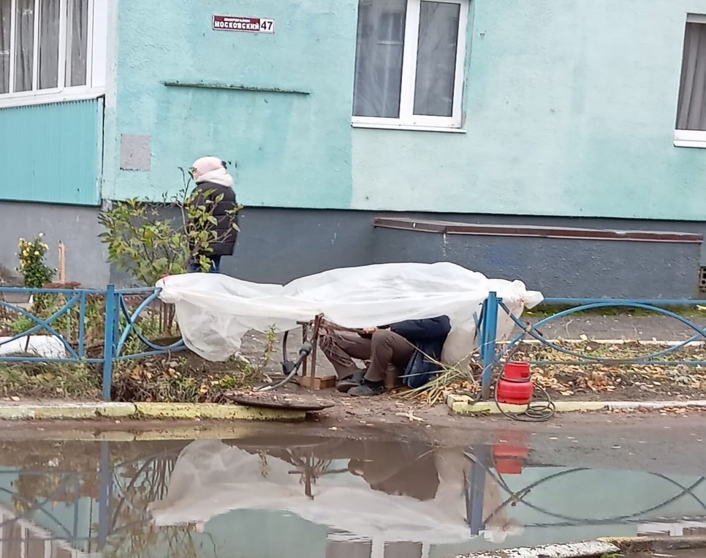 Одни неприятности от этих дождей. А все почему? Ливневок, или ливневой канализации в столице региона почти нет. Отсюда и возникающие там и сям нерукотворные лужи-моря. Одно из них разливается то и дело у дома №47 в Московском микрорайоне (улиц там как таковых нет).