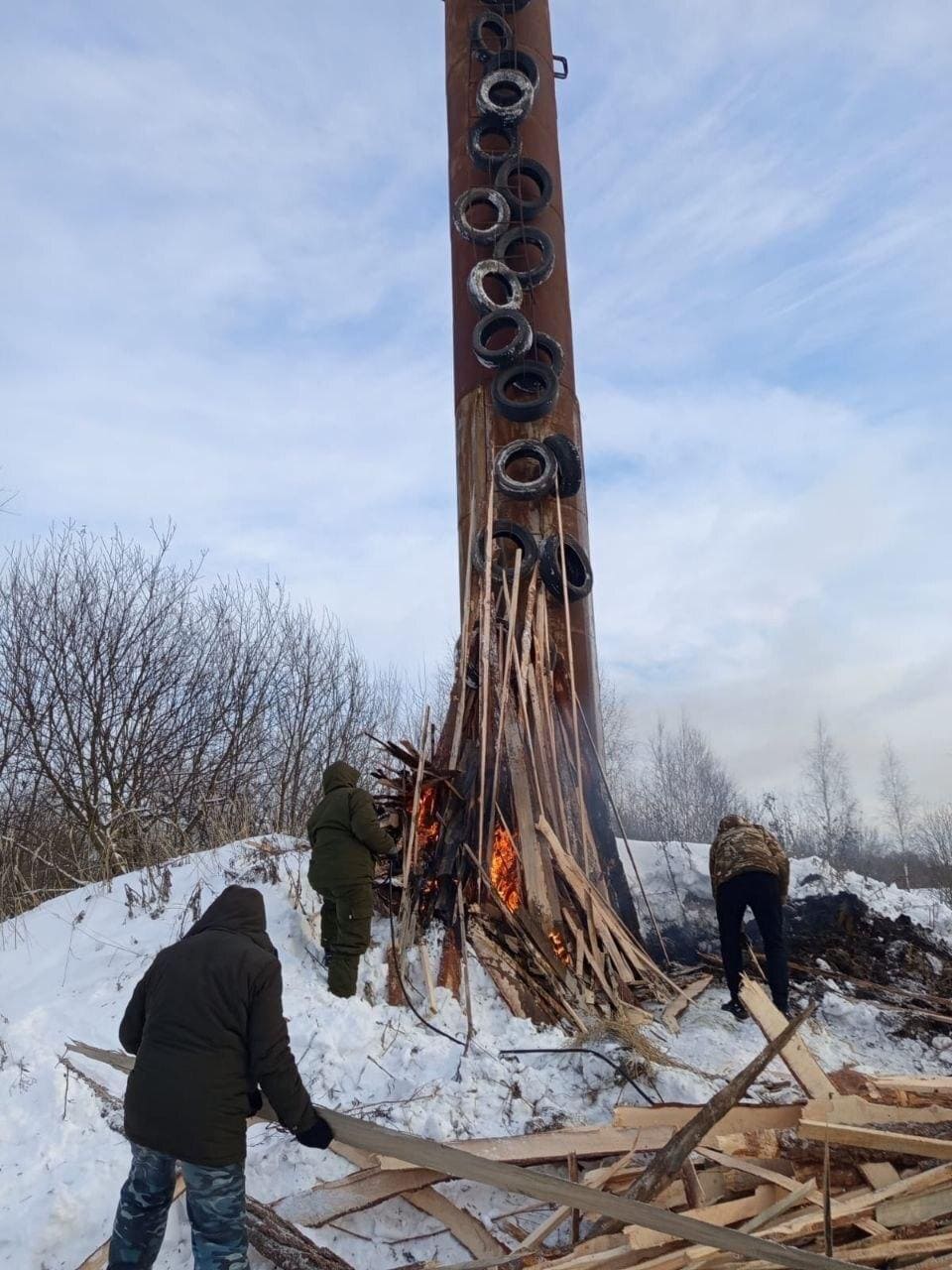 Шла вторая четверть XXI-го века. На Брянщине. Брянские мужики-коммунальщики разогревали-размораживали в лютый холод посредством огромного костра, сложенного из старых покрышек и груды негодных досок, водонапорную башню в деревне Мякишево Выгоничского района.