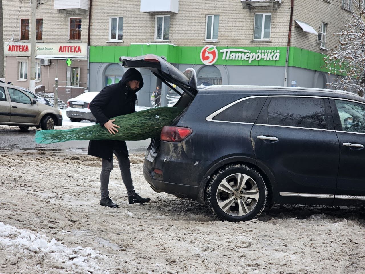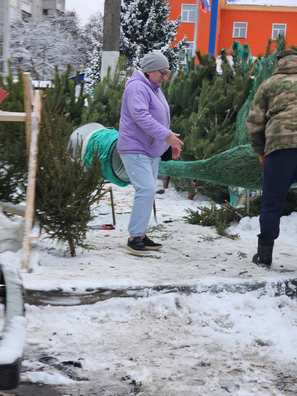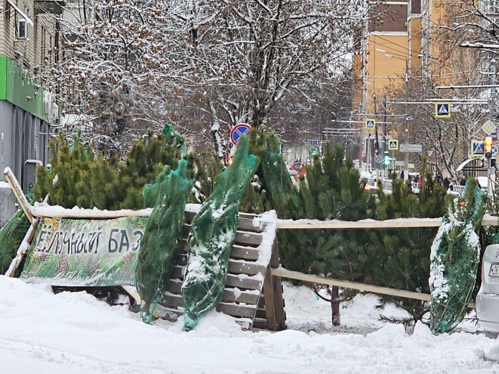 Уже купили ёлку?.. Мы – нет: у нас стоит многие годы одна и та же искусственная. Но тем, кто любит “живых” зелёных красавиц, их в Брянске упаковывают по-современному.