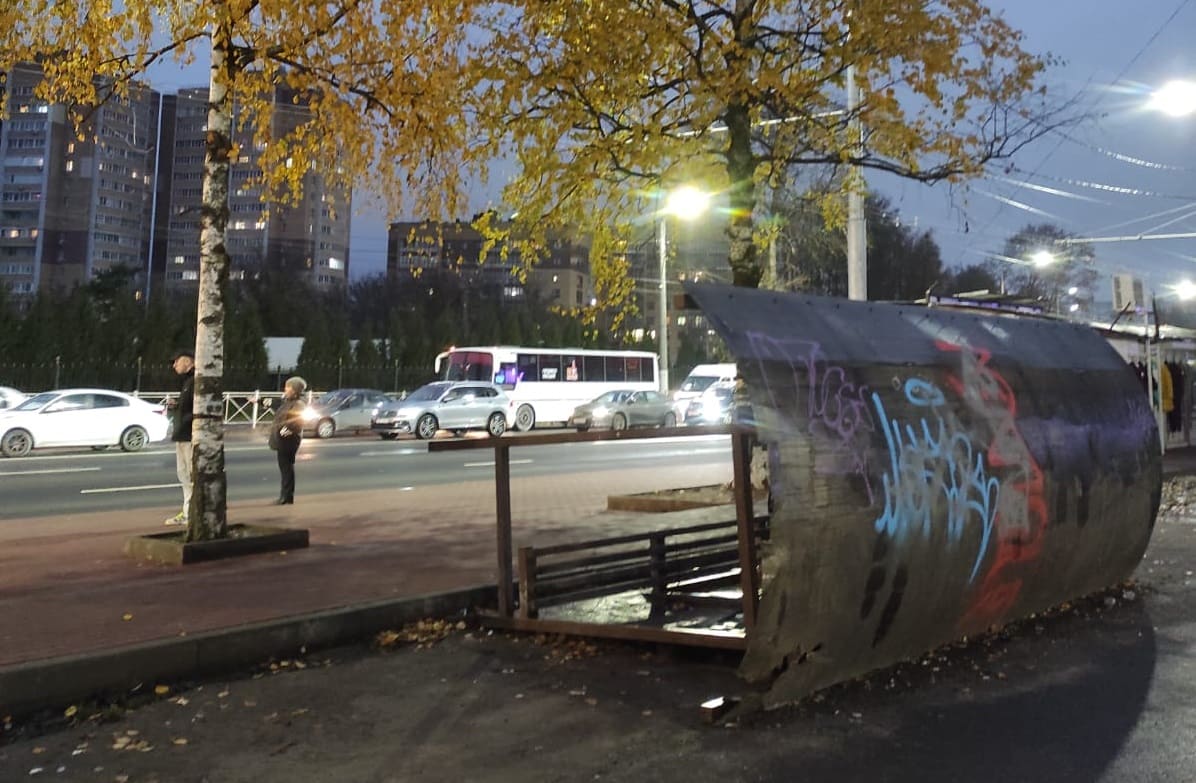 Можно, по идее, металлический корпус остановки и не поднимать. Так даже оригинально выглядит. А люди, они же пассажиры, уже свыклись. На голову дождь льет. конечно, а скоро и снег будет сыпаться, зато сзади, со стороны тротуара в спину совсем не задувает.