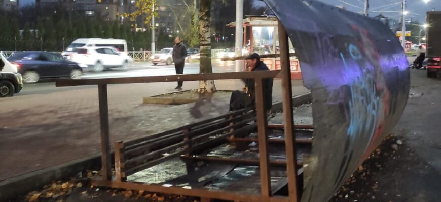 В Советском районе Брянска, на “Электронике” прилегла отдохнуть от трудов праведных городская остановка общественного транспорта.