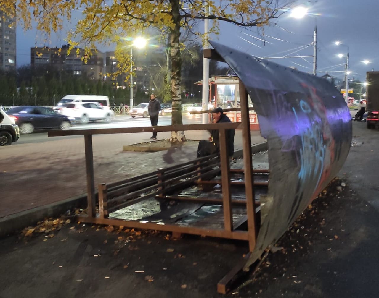 В Советском районе Брянска, на “Электронике” прилегла отдохнуть от трудов праведных городская остановка общественного транспорта.