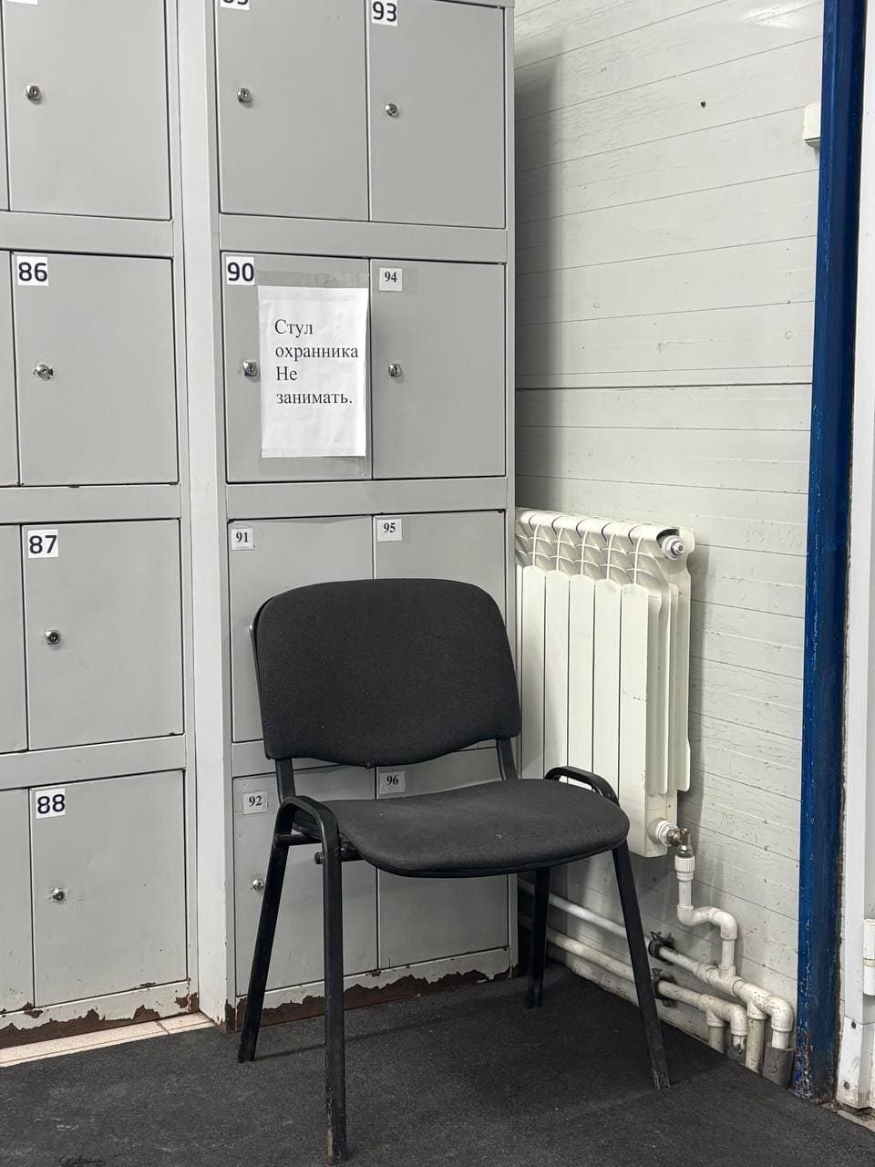 Стул «принадлежит» охраннику «Варяга». И тот вовсе не поощряет тех, кто занимает его служебных «трон». А для непонятливых висит соответствующее объявление-предупреждение.