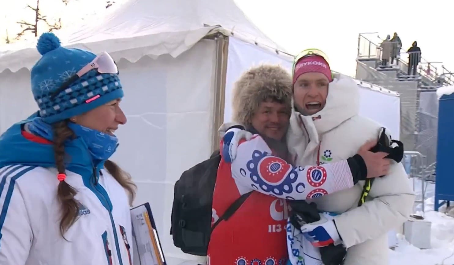 – К нормальным, к хорошим [журналистам] я буду подходить, здороваться, обнимать, – заявил показательно Большунов, обнимая корреспондента, который вёл себя, по его мнению, правильно.