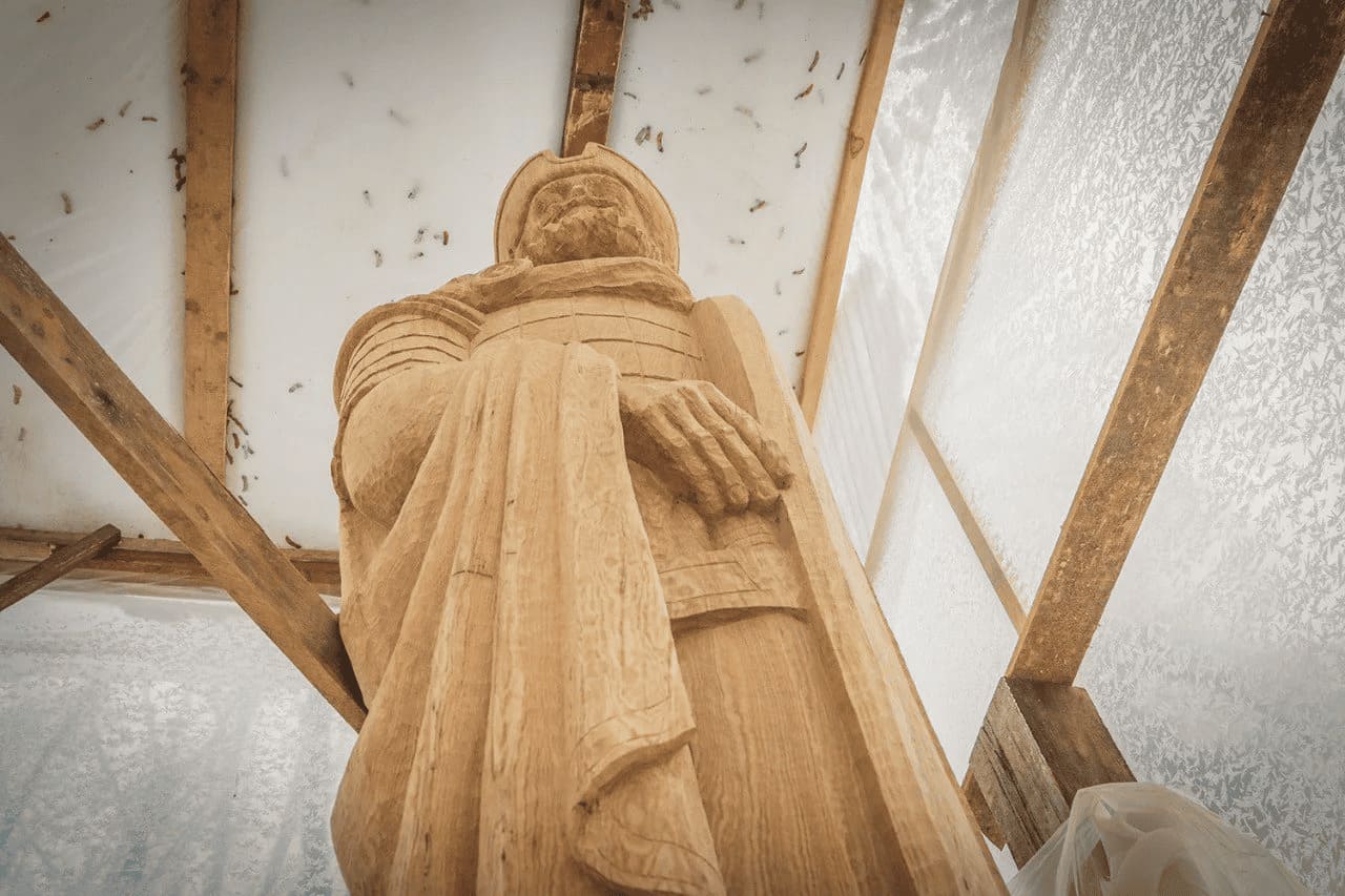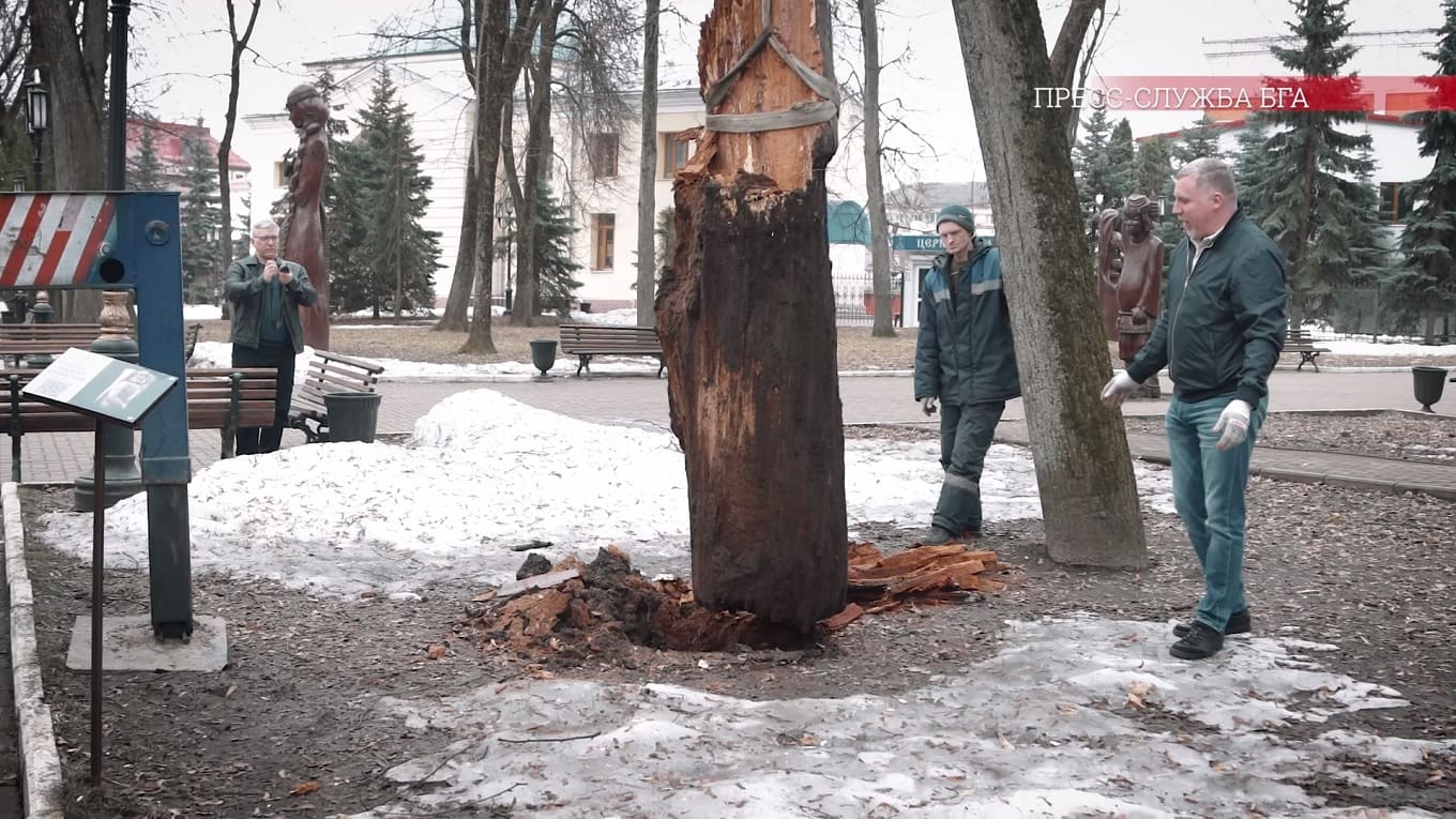 На него установят новую скульптуру, которую вырезал из дуба мастер Андрей Вишневский (на фото выше — Прим. ред.). Установка Романа Брянского планируется в апреле».