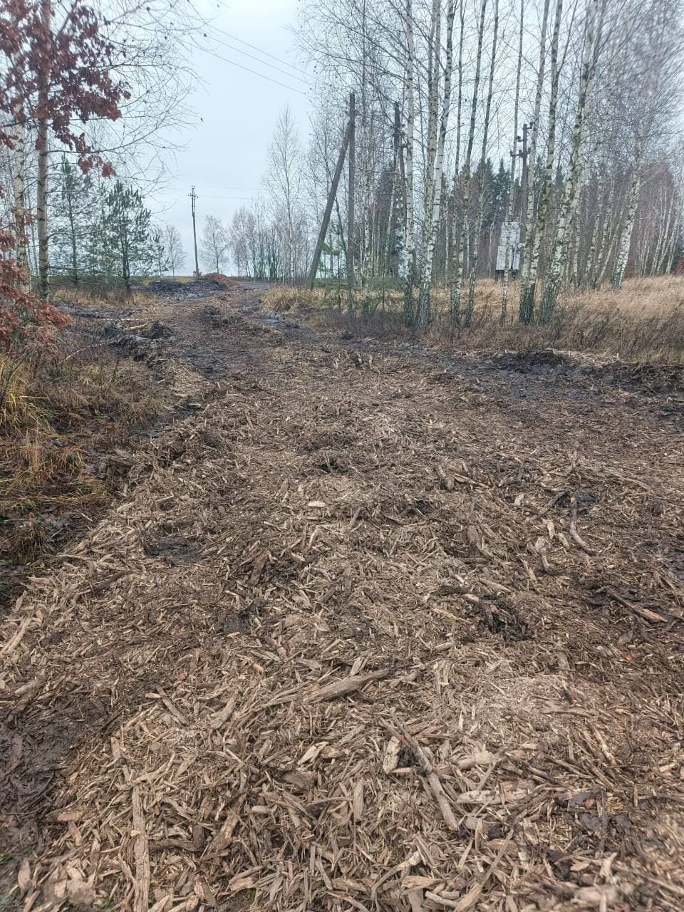 Специалисты произвели планировку с использованием погрузчика, затем участок был обработан скрейпером и дополнительно подсыпан щепой для улучшения проходимости. По итогам работ был предоставлен отчет в администрацию.