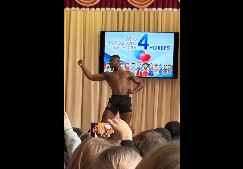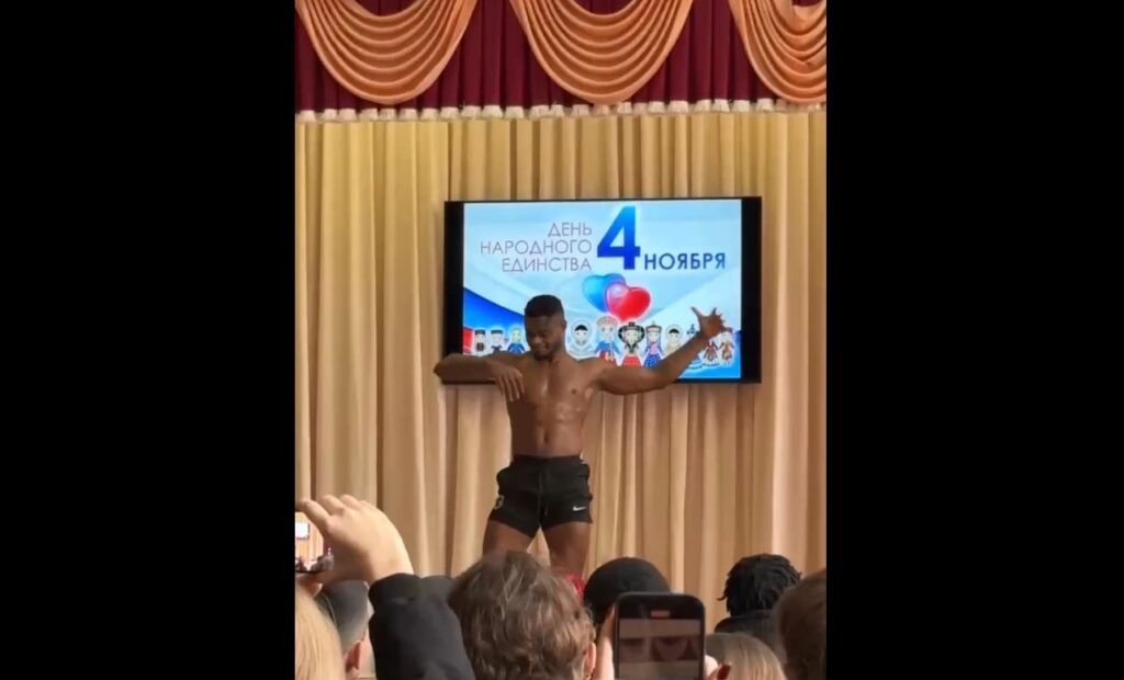 “Продолжение позора. Брянский филиал РЭУ им. Плеханова, на праздник “наротного идинства” студентам показали почти голых негров. Все в рамках “многонациональных традиционных ценностей”. Брянский филиал Российского экономического университета имени Г. В. Плеханова”.