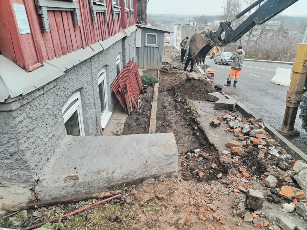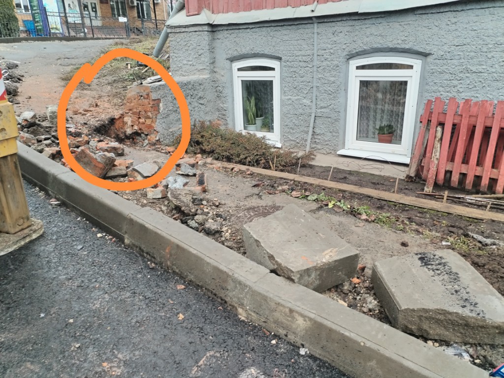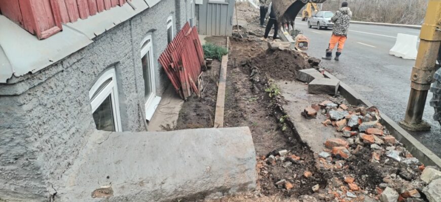 Но теперь благоустроители горки на Горького отчаянно ломают ковшом экскаватора и вручную несущие конструкции дома бывшего дома повара Гаврилко. Под “разбор” попали усиление фундамента здания и его защита от дождевой и талой воды.