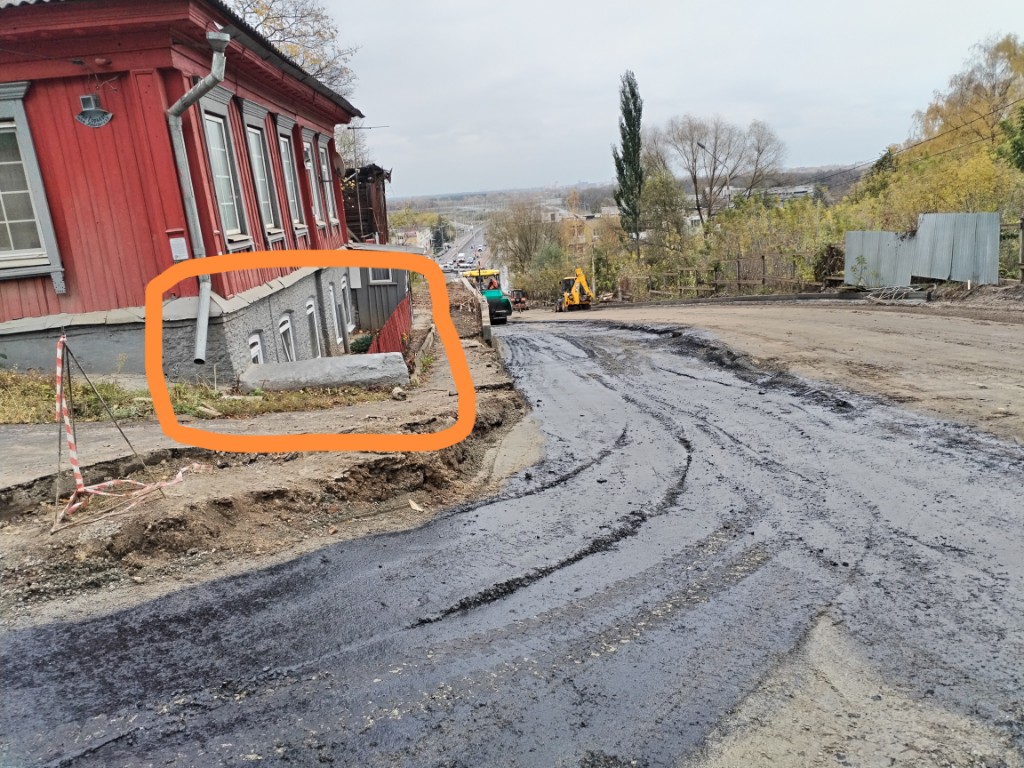 На фотографиях пятилетней давности – любительских и с сервиса “Яндекс.Карты” – видно, как далеко и безопасно стоял от дороги дом №10 на улице Горького. Сейчас же обустраиваемый вдоль него тротуар оказался аккурат под окнами. И никакой отмостки, обязательной для любого дома…
