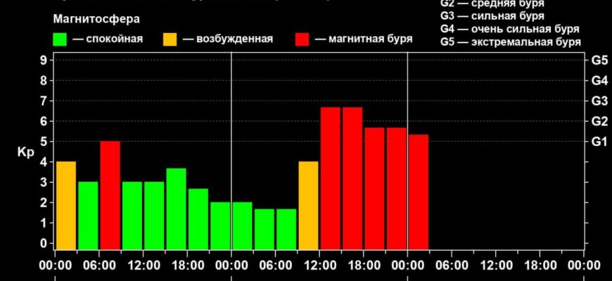 Геомагнитные бури и возмущения, по предварительным оценкам, продлятся до четверга.