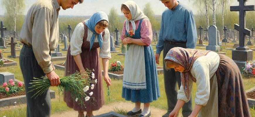 На Радоницу, являющуюся также Родительским днем, впервые после Пасхи и в отличие от неё разрешено ходить на кладбище и поминать усопших. Понятие Радоница происходит от слова «радость».