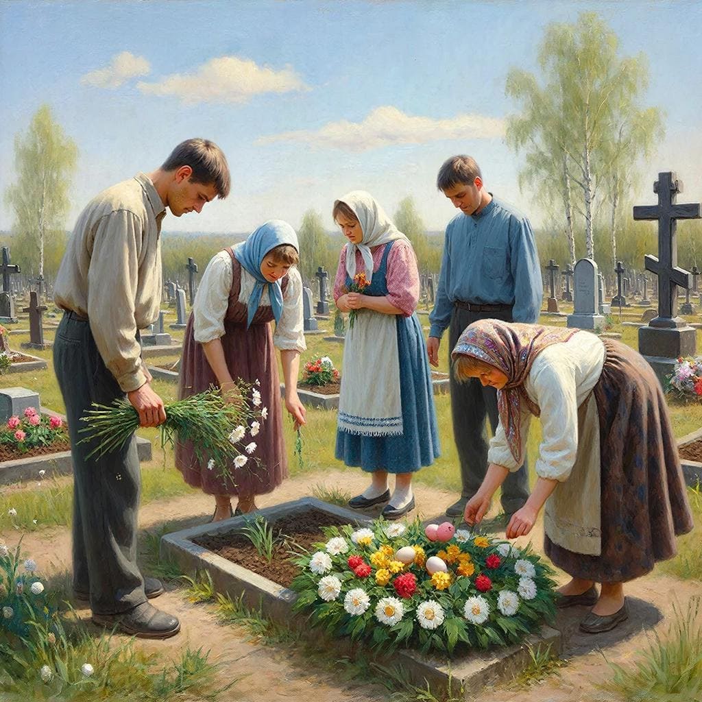 Между тем православная Радоница имеет языческие корни. Восточные славяне-язычники считали, что после смерти человек переходит в загробный мир. И оттуда он способен помогать живым в разных делах. Отсюда и пошла традиция устраивать поминальные «перекусы» на могилах предков — это стремление разделить пищу с умершими так, как будто они по-прежнему живы.