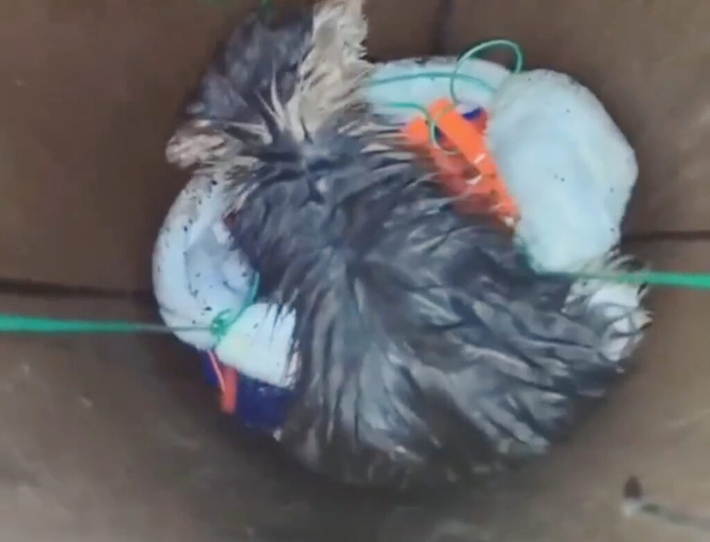 Уже отчаявшись, но ещё раз подумав, как быть, волонтеры соорудили что-то типа люльки-кошëлки. Опустили её на дно.