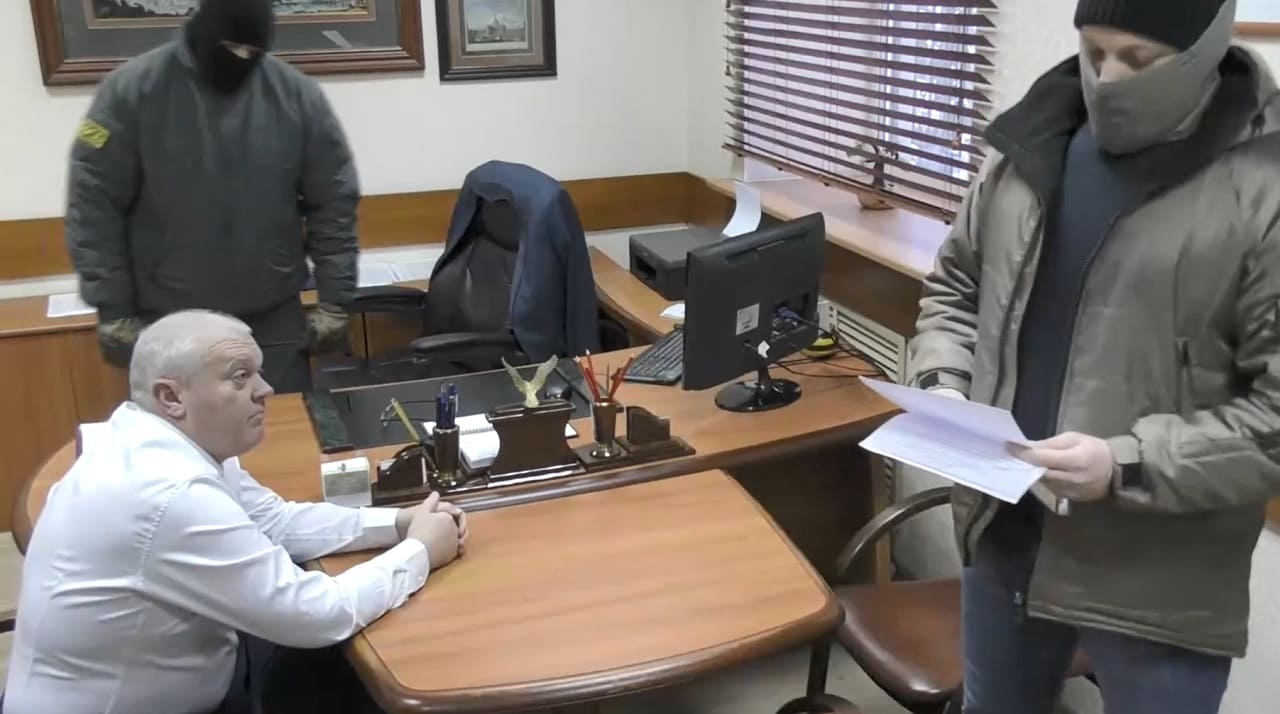 Появилось видео от регионального управления ФСБ, в котором показаны моменты задержания, а затем и допроса проворовавшегося Владимира Сергеевича Антошина. Он теперь уже бывший директор государственной конторы «Брянскоблтехинвентаризация» и всё еще родной брат вице-спикера Брянской областной Думы, командира добровольческого отряда «БАРС-Брянск» Сергея Антошина.