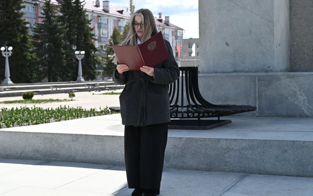 Молодые прокурорские работники приняли присягу на верность Закону и стране у Вечного огня на площади партизан в городе Брянске.