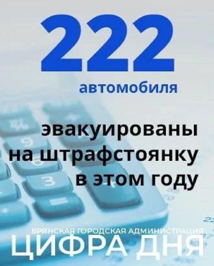 Накануне мэрия Брянска опубликовала в своих соцсетях «Цифру дня» — «222 автомобиля были эвакуированы на штрафстоянку в 2026 году». Однако в Брянской городской администрации даже не задумались, кажется, насколько странной и позорной выглядит сия ровная и должна впечатлить многих «цифра дня». И вот почему.