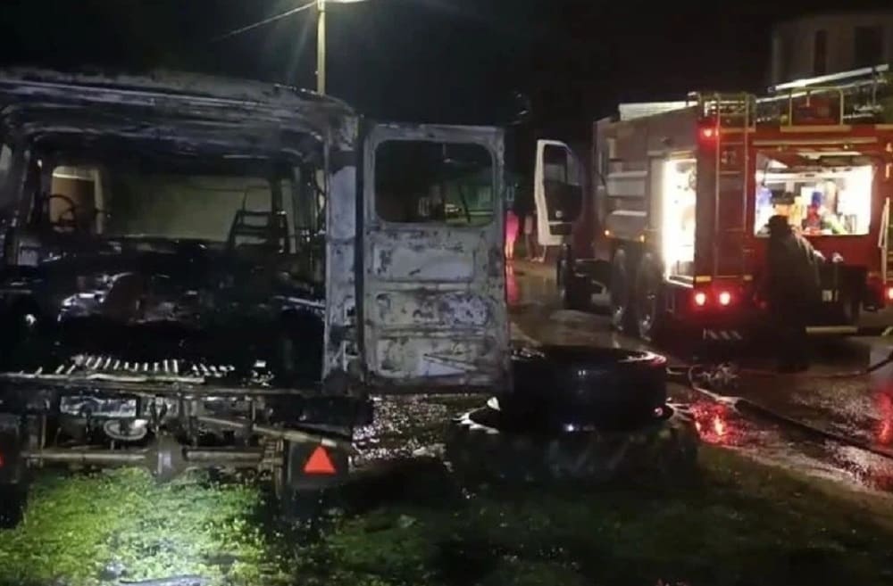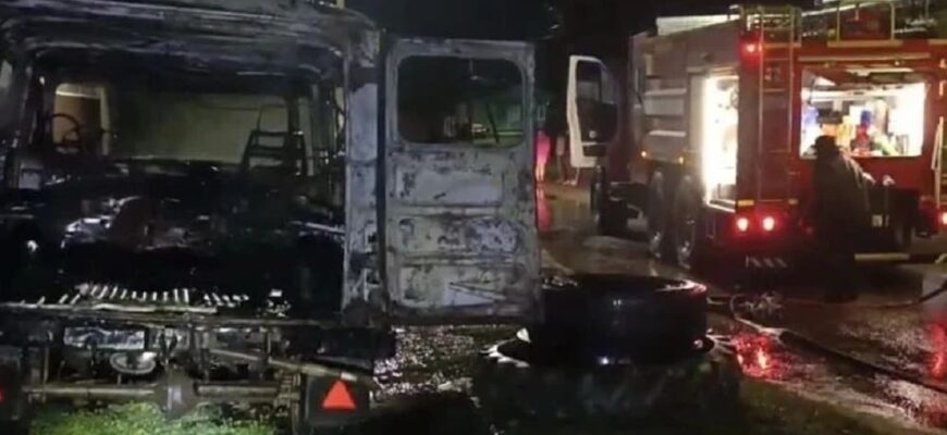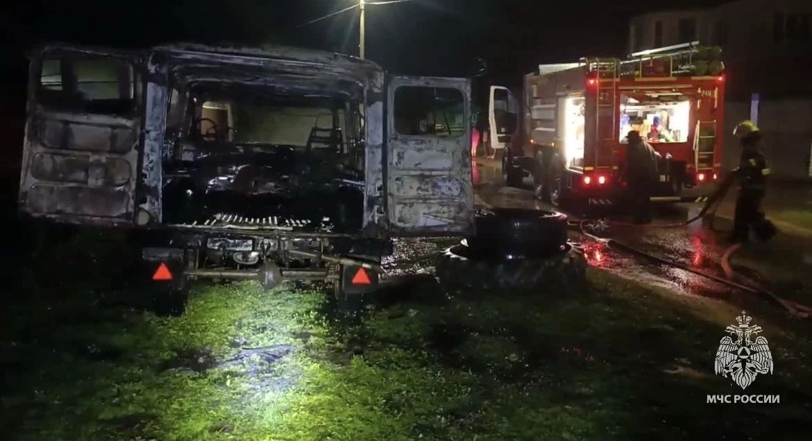 В брянском городе-райцентре Карачев, на улице Володарского, посреди ночи вспыхнул грузопассажирский микроавтобус.