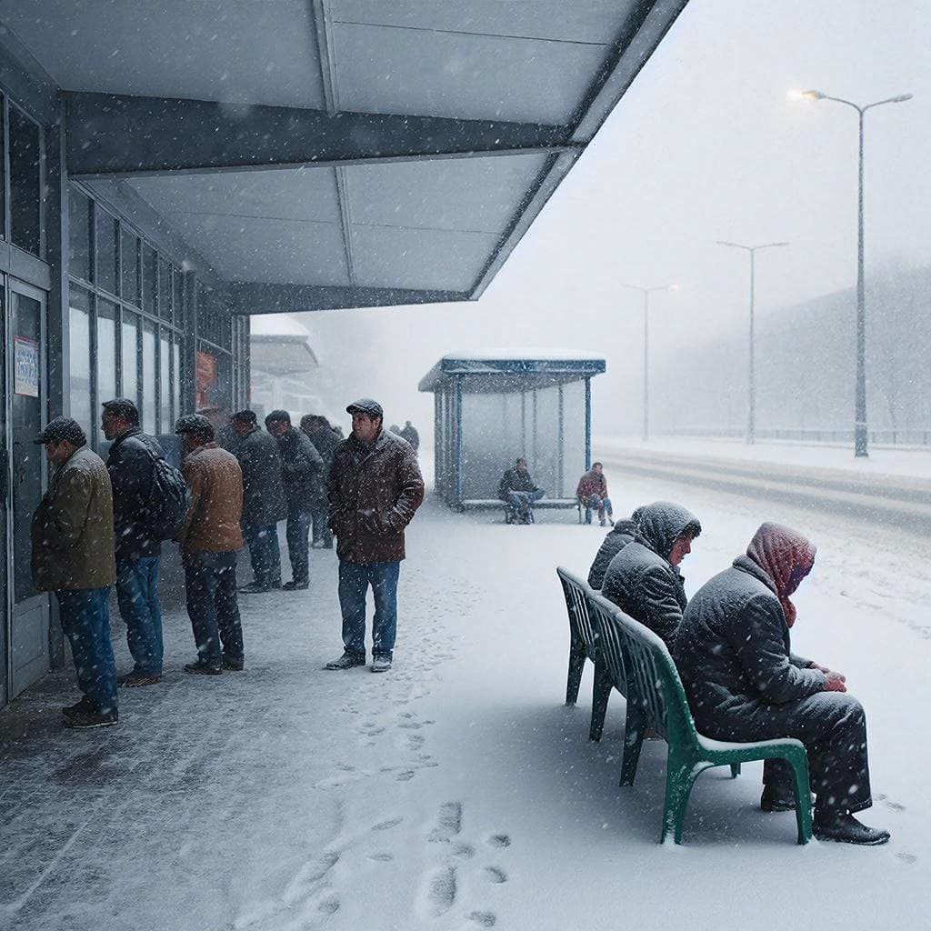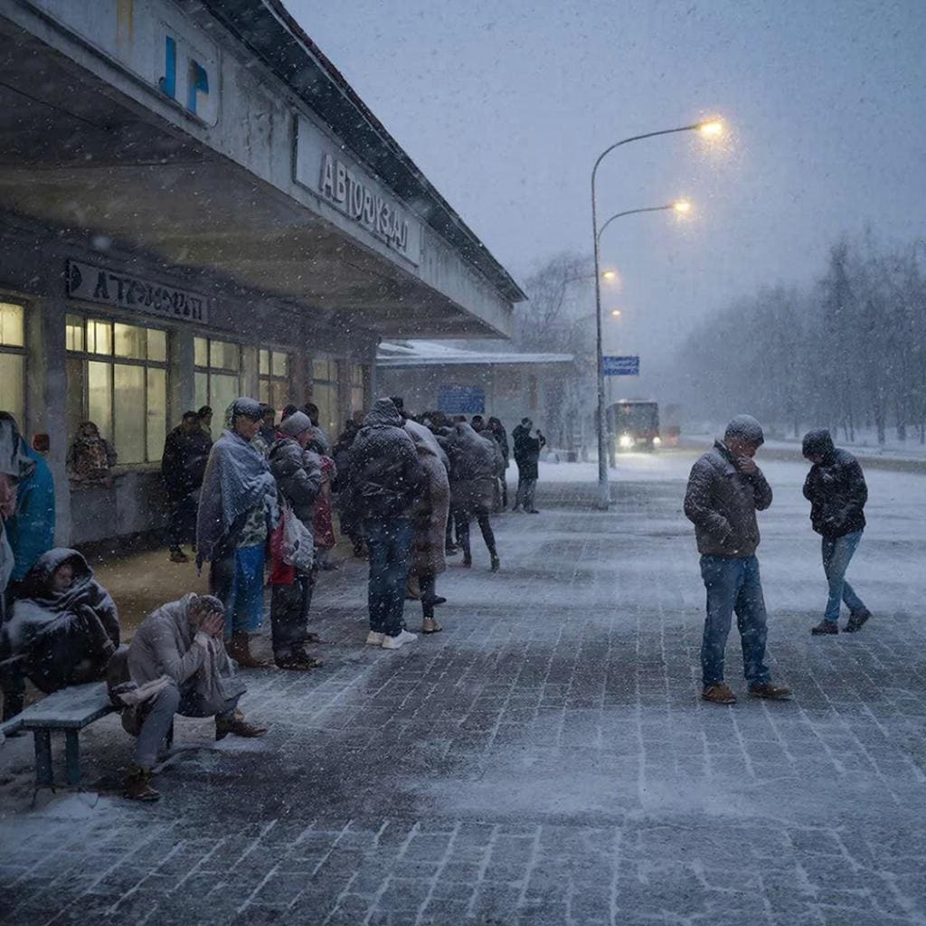 Теперь люди-пассажиры вынуждены дожидаться идущих «на дальняк» автобусов прямо на улице — на холоде, у закрытого автовокзала. Под снегом и дождём (те идут сейчас попеременно). Билеты же покупаются отныне непосредственно у водителей — если успеешь затолкаться в автобус и купить их, конечно…