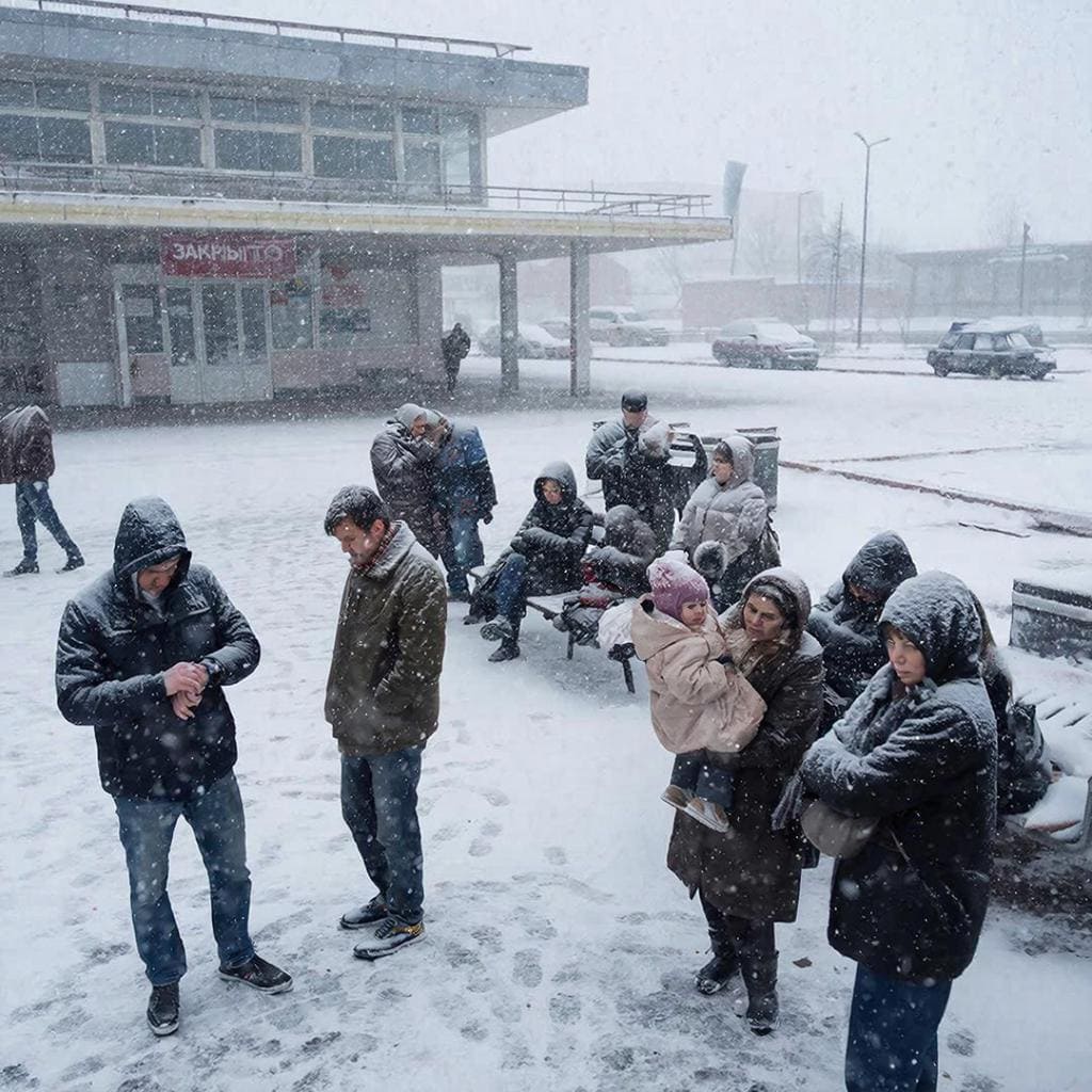 Теперь люди-пассажиры вынуждены дожидаться идущих «на дальняк» автобусов прямо на улице — на холоде, у закрытого автовокзала. Под снегом и дождём (те идут сейчас попеременно). Билеты же покупаются отныне непосредственно у водителей — если успеешь затолкаться в автобус и купить их, конечно…