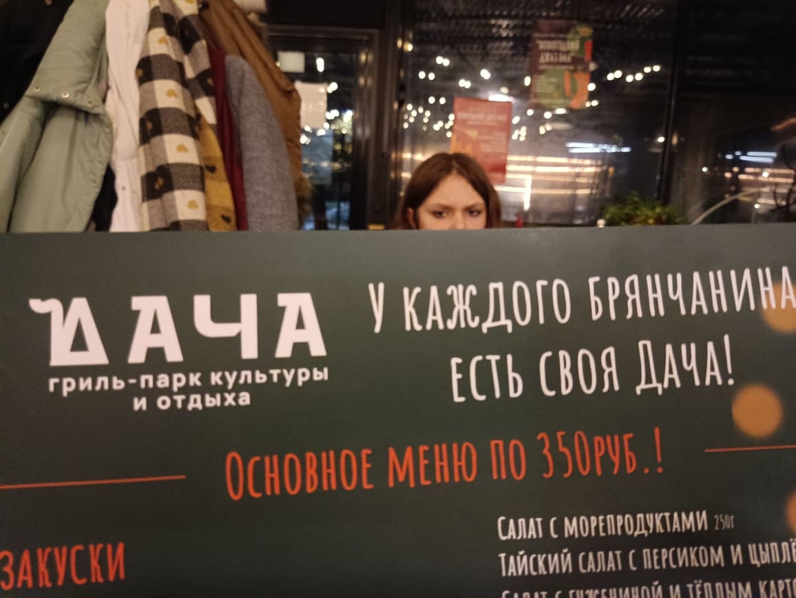 Вернее, Wi-Fi есть – смартфоны его видят. Но пароль от него на “Даче” принципиально не дают. Почему? Не положено: видимо, боятся тинейджеров-халявщиков из соседнего фастфуда “Вкусно – и точка!”, где незапароленная Wi-Fi сеть “умерла” с полгода назад.