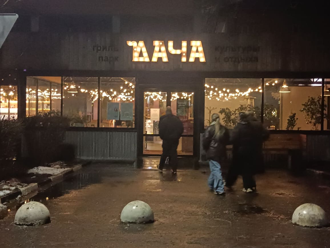 Мерцающая в конце мрачной аллеи яркая вывеска, составленная из заглавных букв “ДАЧА”, манила нас, словно маяк или путеводная звезда. Напоминая Александру вывески парижских кабаре, виданных им в “прошлой жизни”.
