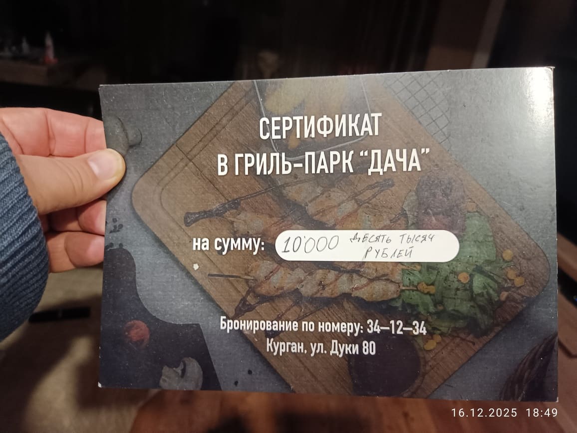 Александр “Брянский ворчун” Чернов посмотрел на протянутую товарищем плотную чёрную бумажку формата А5, прочёл написанное на ней и не поверил. Это был сертификат в одно из заведений общепита, а именно в гриль-кафе “Дача”, которое находится рядом с Курганом Бессмертия в Брянске. Но больше журналиста удивило другое.