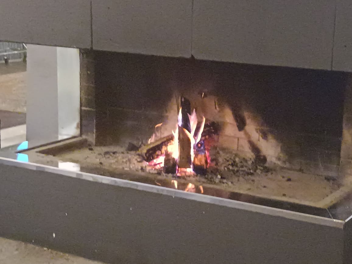 Когда только попадаешь в кафе, то кажется, что там холодновато. Но к дачной свежести быстро привыкаешь, а если занять столик поближе к камину, то и вовсе становится вскоре хорошо.