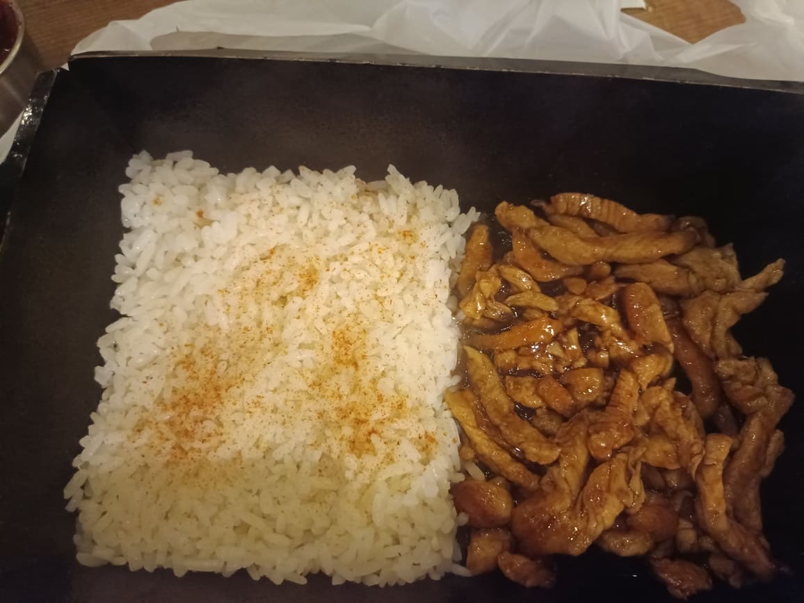 Последним в списке горячего оказалась Курица терияки с рисом. Её взяли, чтобы, нет, не от жадности, а дабы сполна выбрать сумму по сертификату – вложились почти тютелька в тютельку. “Потратив” в итоге 10 080 рублей плюс несколько сотен чаевых. Но есть курицу терияки сил уже не было: попросили упаковать с собой, в пластиковый контейнер.