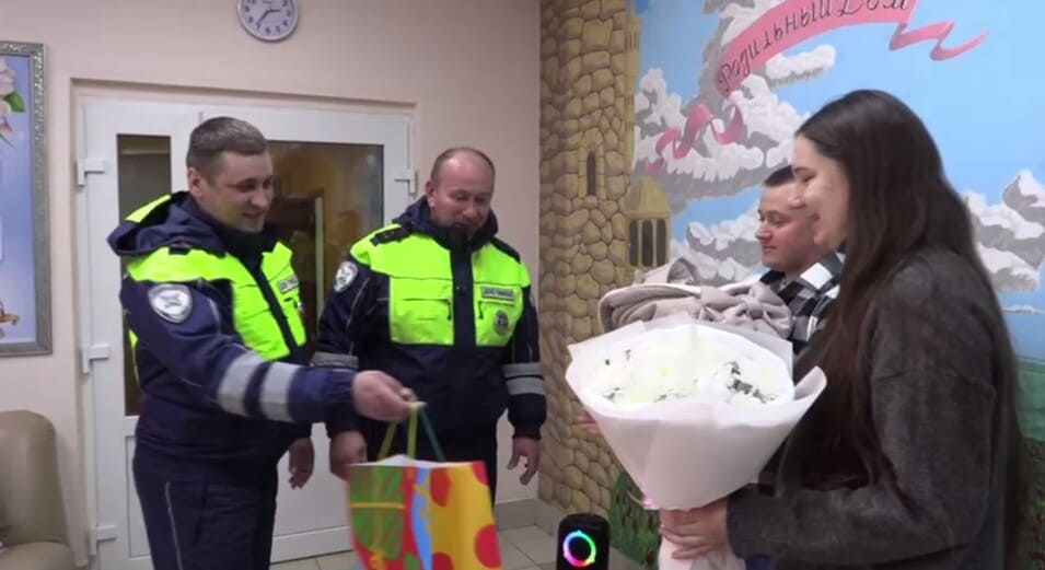 А сами инспекторы ДПС, ставшие неожиданно для себя крёстными для незнакомого малыша, пришли на его совместную со счастливой мамой выписку из роддома. Вручили ей цветы и подарок. Там же молодой отец горячо благодарил выручивших его брянских гаишников-«кумовьев».