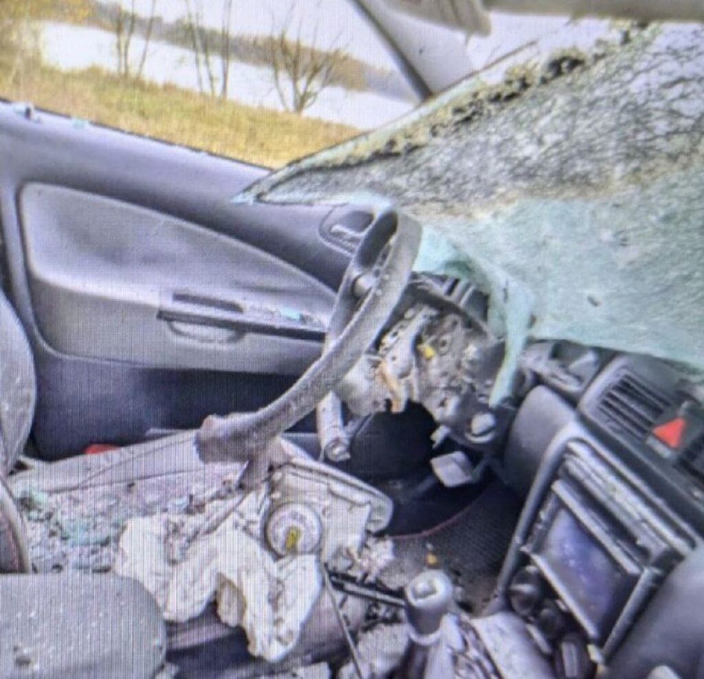 – Пострадал водитель и повреждена машина, – говорится в неофициальном сообщении, которое сопровождает фотография развороченного салона легкового авто. Восьмеркой вывернут руль, полностью выдавлено пошедшее мелкой “паутиной” лобовое стекло, разбита приборная панель.