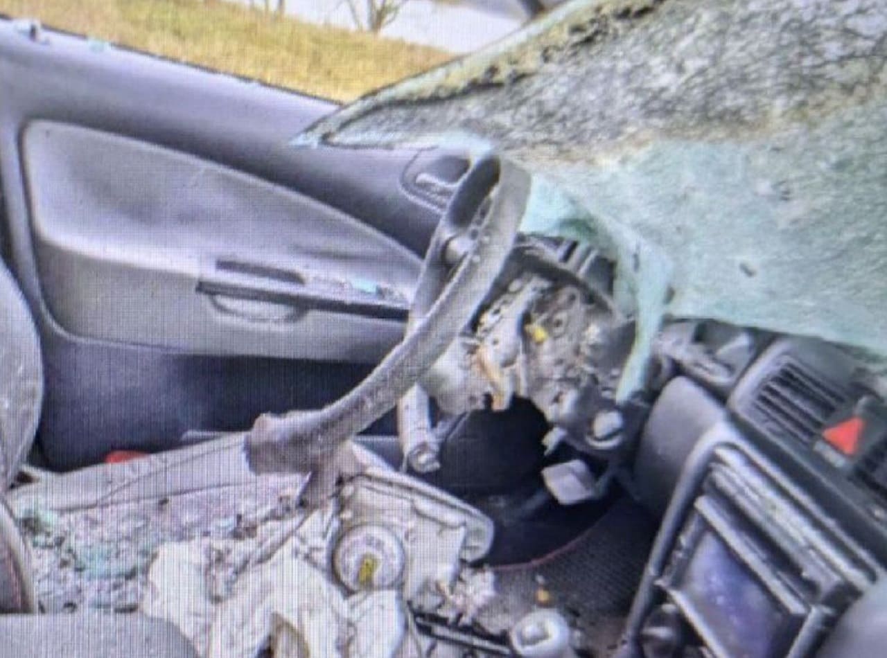 – Пострадал водитель и повреждена машина, – говорится в неофициальном сообщении, которое сопровождает фотография развороченного салона легкового авто. Восьмеркой вывернут руль, полностью выдавлено пошедшее мелкой “паутиной” лобовое стекло, разбита приборная панель.